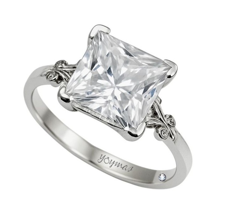 Anillo casual con circonia cuadrada de 8.5mm central con montura de 4 dientes dobles y laterales con diseño de «V» ancho 2.3mm con un Diamante de 1mm 0.5pts incrustado por la parte interna de anillo DIA-140