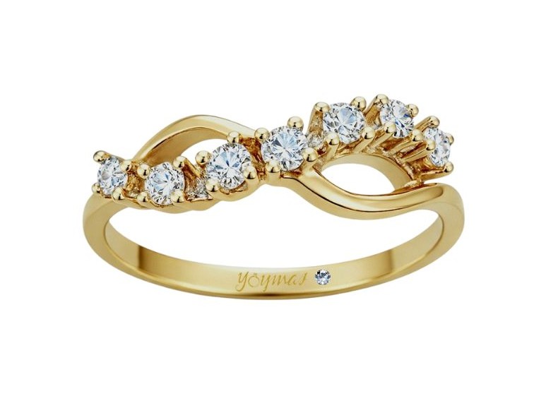 Anillo casual en forma de infinito con estrias y circonias oro 10K con un Diamante de 1mm (0.5pts) incrustado en la parte interna del anillo