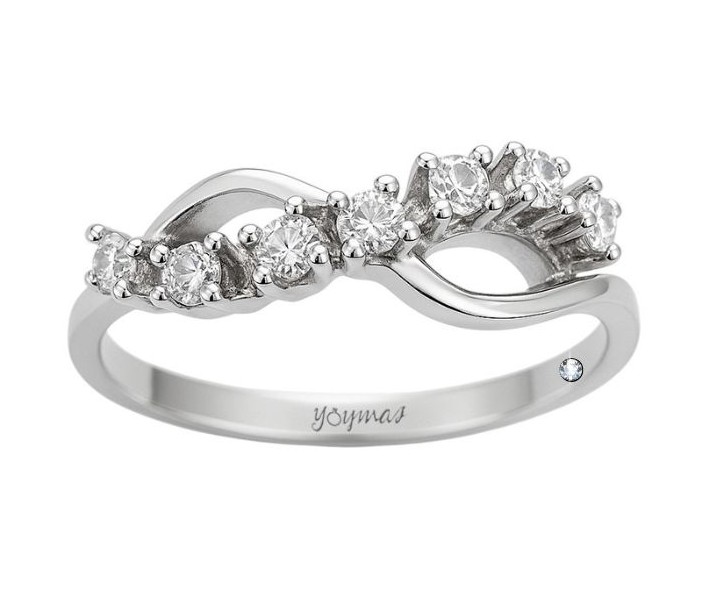 Anillo casual en forma de infinito con una linea de 7 circonias de 1.5mm con estrias ancho 2mm con un Diamante de 1mm 0.5pts incrustado por la parte interna de anillo DIA-140