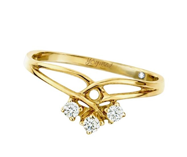 Anillo casual con diseño de montura entrelazada con 3 circonias de 2mm con un Diamante de 1mm (0.5pts) incrustado en la parte interna del anillo ancho 1.5mm 10K