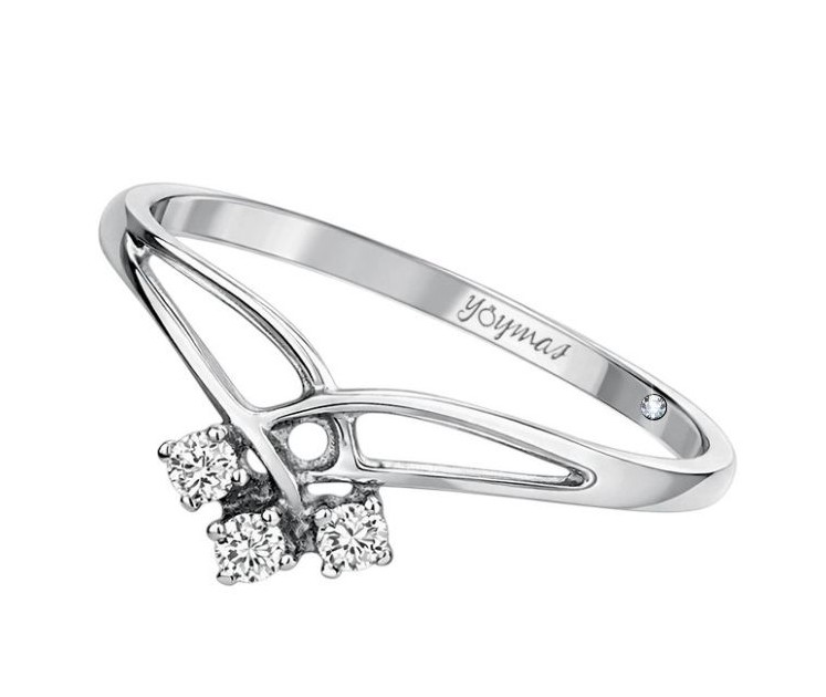 Anillo casual con diseño de montura entrelazada con 3 circonias de 2mm ancho 1.5mm JM-Y-9 con un Diamante de 1mm 0.5pts incrustado por la parte interna de anillo DIA-140