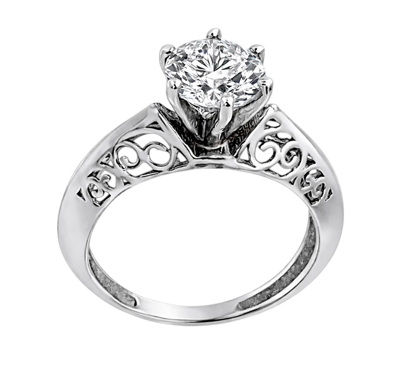 Anillo solitario con cuerpo calado perfil «v» y montura de 6 dientes y circonia 7mm