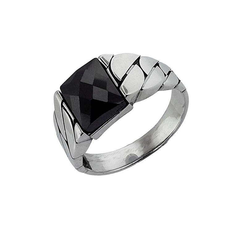 Anillo C/Z rectangular 9x8mm y laterales de eslabon ancho 4mm plata 19+