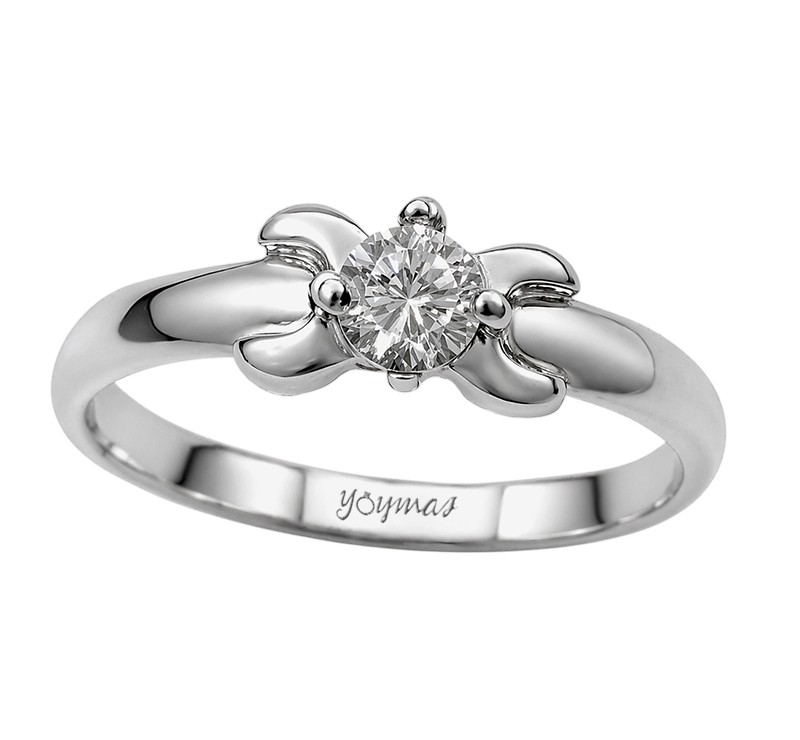 Anillo solitario con montura de 4 dientes con circonia de 4mm con motivo a los lados de la montura