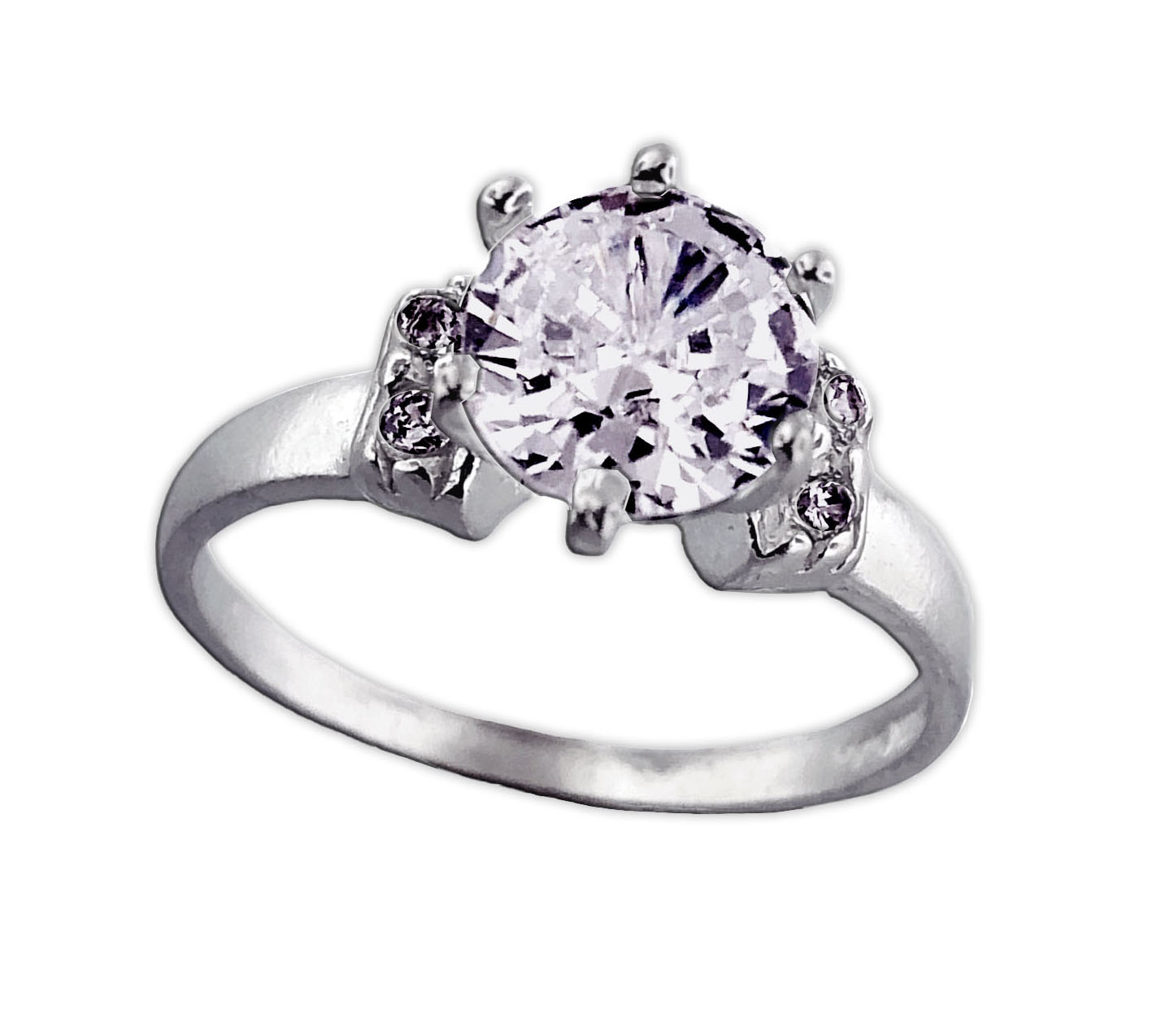 Anillo con montura de 6 dientes con circonia de 7mm y diseño con 2 circonias pegadas en la montura