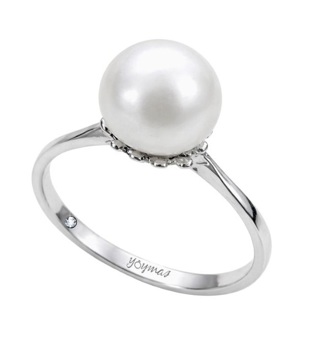 Anillo casual con perla cultivada al centro de 8.5mm diseño miligraneado debajo de la perla cuerpo liso con un Diamante de 1mm 0.5pts incrustado en la parte interna del anillo ancho 1.5mm DIA-140