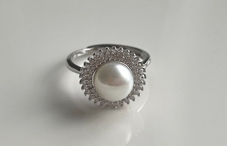 Anillo ajustable con perla mabe con doble halo de circonias plata