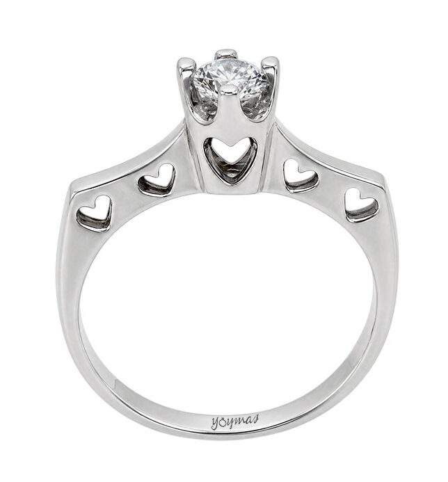 Anillo solitario con cuerpo calado con corazones con 4 dientes