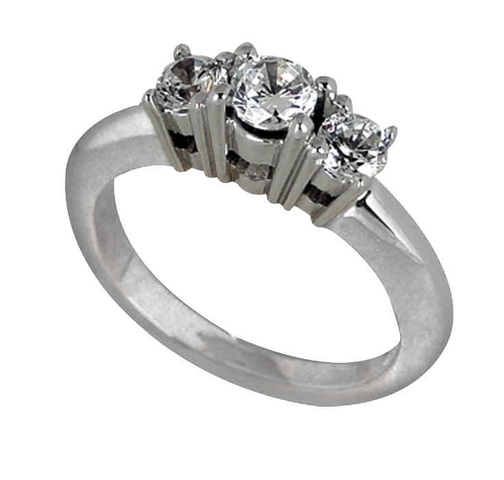 Anillo de compromiso con montura de tres piedras 1 medida de 5mm y 2 circonias de 3.5mm en plata C-22