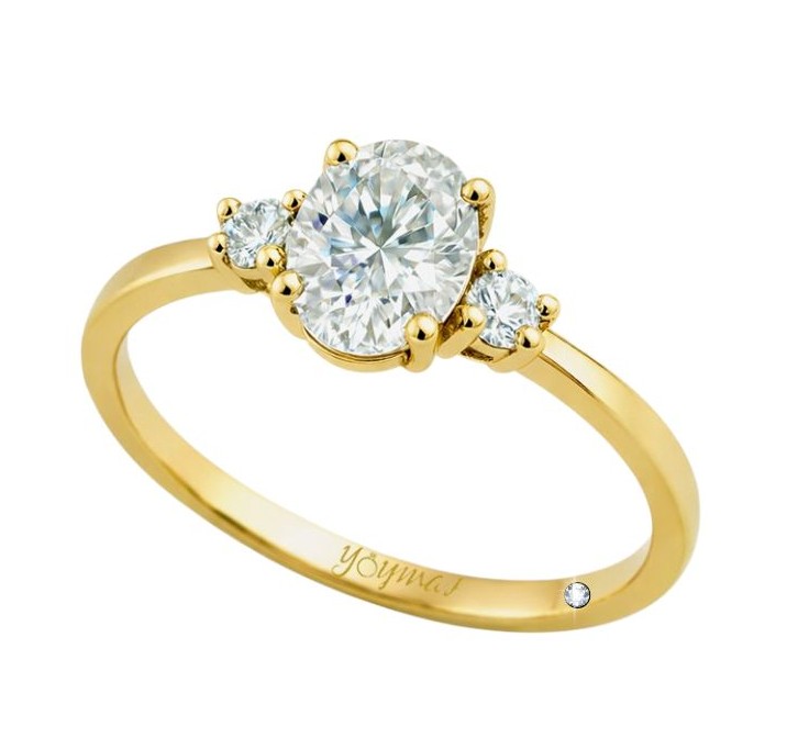 Anillo de compromiso con circonia ovalada central y 2 circonias a cada lado oro 10K