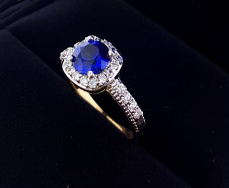 Anillo Zafiro 6.3mm 140pts halo C/Z Y 4 C/Z c/lateral miligraneado montura OB 10K 187