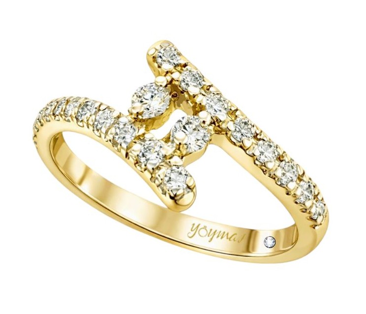 Anillo montura encontrada sesgada 2 C/Z 2.25mm 9 C/Z 1.5mm c/lateral con un Diamante de 1mm (0.5pts) incrustado en la parte interna del anillo ancho 2mm 10K 50