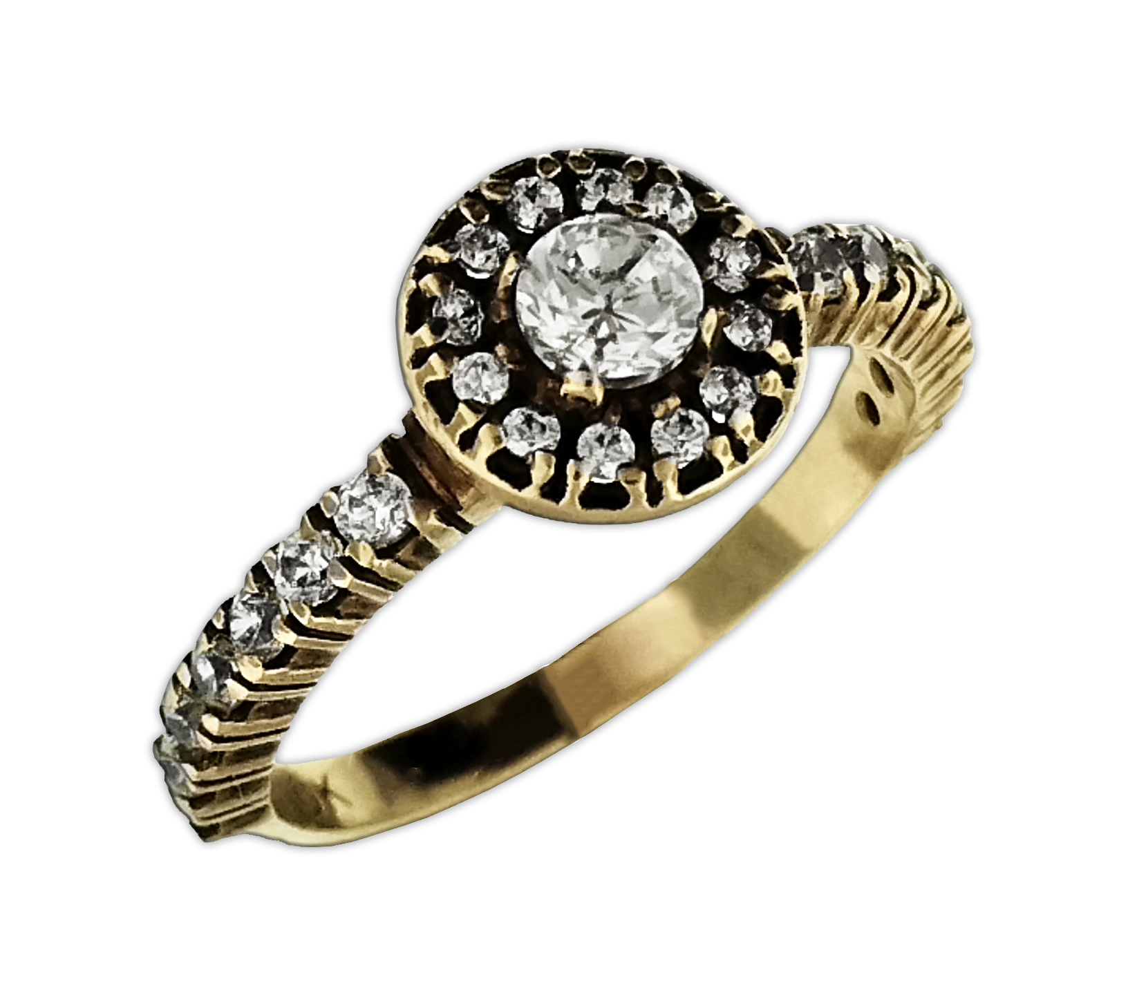 Anillo de compromiso con circonia al centro y halo de circonias oro 10k
