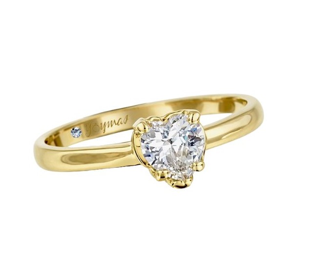 Anillo con circonia en forma de corazón de 5mm cuerpo liso con un Diamante de 1mm 0.5pts incrustado en la parte interna del anillo ancho 1.5mm 10K