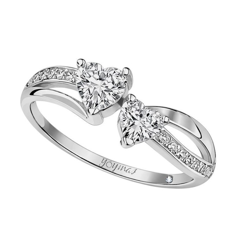 Anillo de promesa con dos circonias en forma de corazón plata