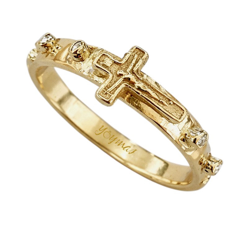 Anillo denario con crucifijo ancho 3mm 10K 59-