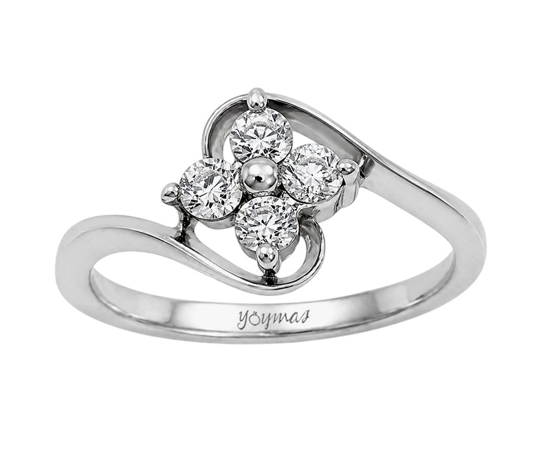 Anillo diseño flor 4 pétalos con circonias plata