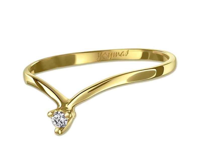 Anillo casual estilo en V Diamante 2mm (4 pts) cuerpo liso ancho 1.25mm 10K 36–