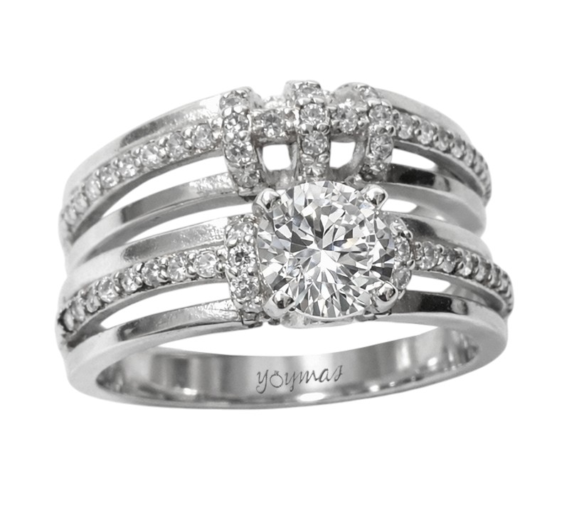 Anillo jacket C/Z 6mm 1 fila C/Z centro y argolla 1 fila C/Z al centro ancho 2mm plata 19-