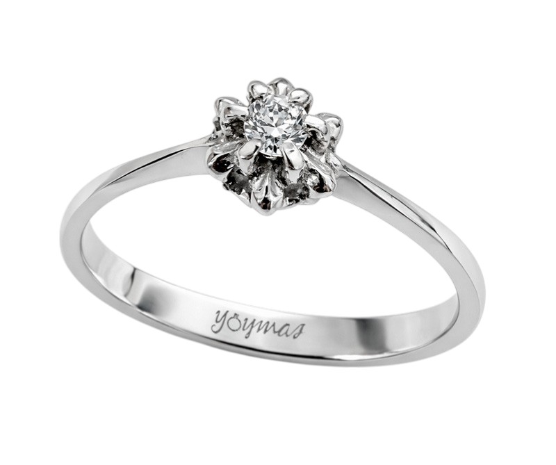 Anillo con doble montrua de flor alta con circonia de 2mm sujetada por 6 dientes cuerpo liso ancho 2mm