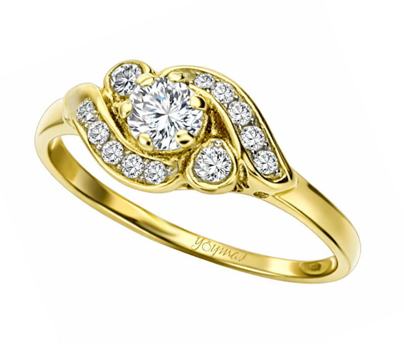 Anillo con montura encontrada con halo de circonias y circonia central de 2mm ancho 1.4mm oro 14k