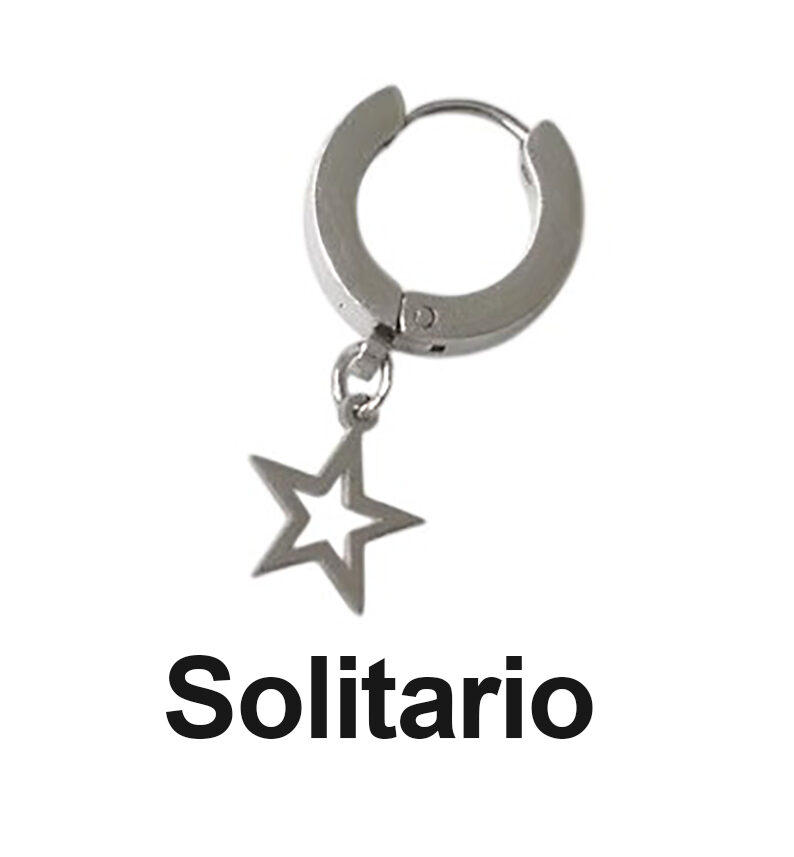 Arete de argolla solitaria lisa con dije de estrella calada plateada de acero
