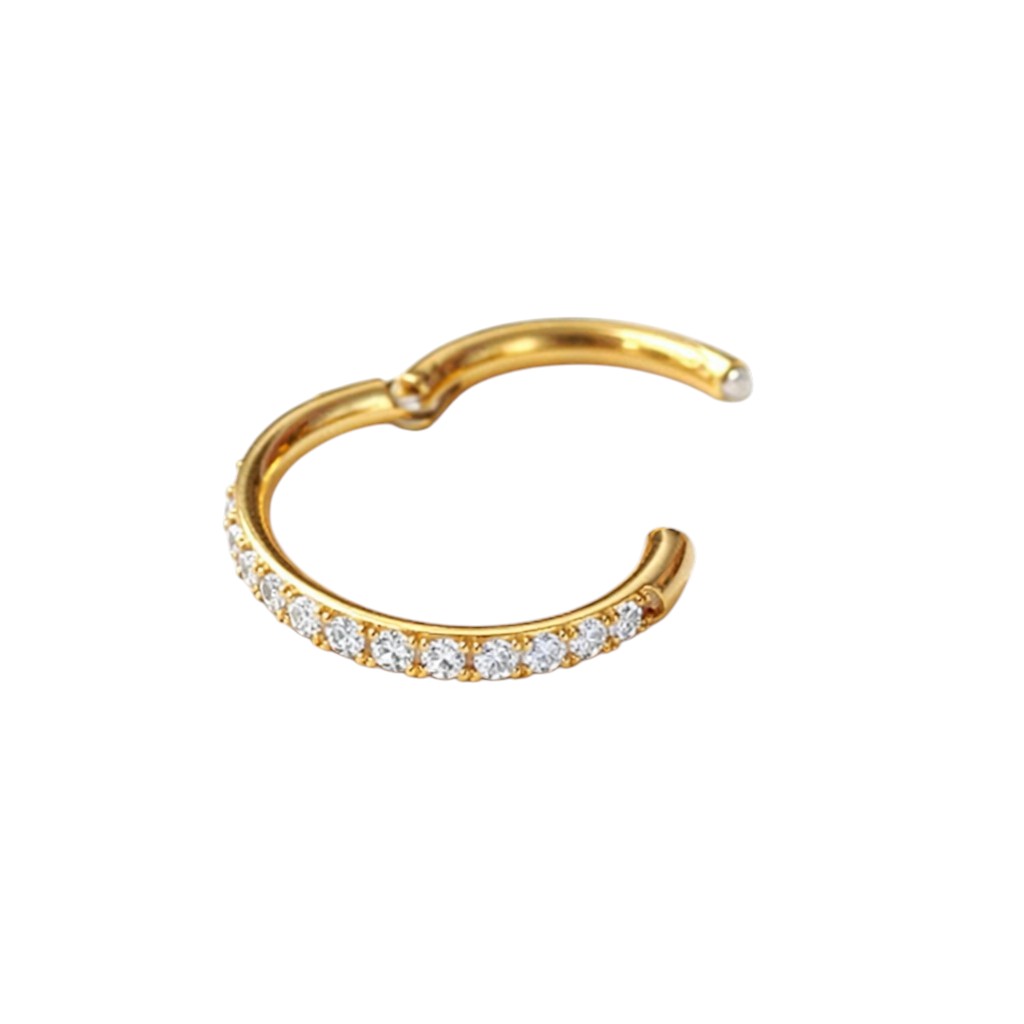 Arete de argolla solitario para nariz con circonios diámetro 12mm ancho 1.2mm chapado en oro dorado