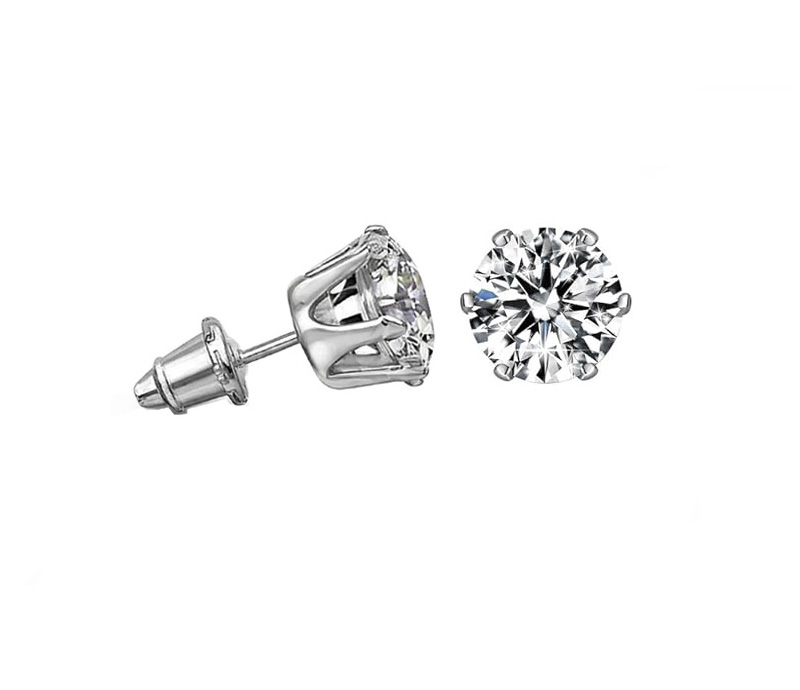Aretes con circonio de 5mm montura de corona de 6 dientes con trabador de sombrerito plateados