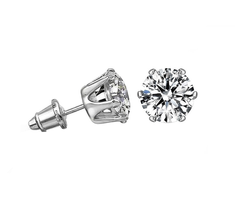 Aretes con circonio de 7mm montura de corona de 6 dientes con trabador de sombrerito plateados