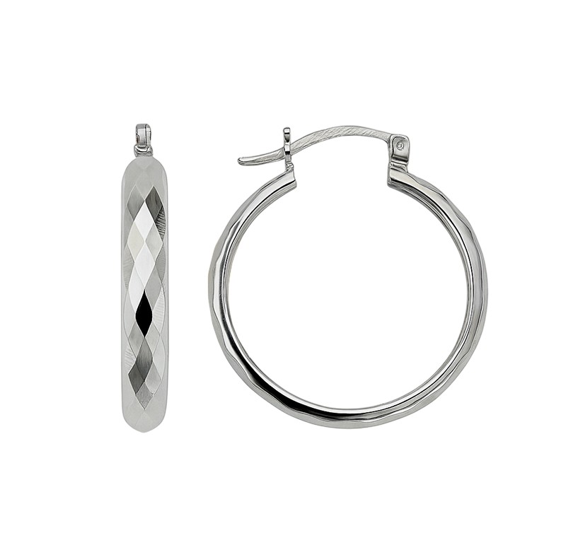 Aretes argollas fancy diamantado en rombo al frente 26.5mm ancho 4mm plata 10