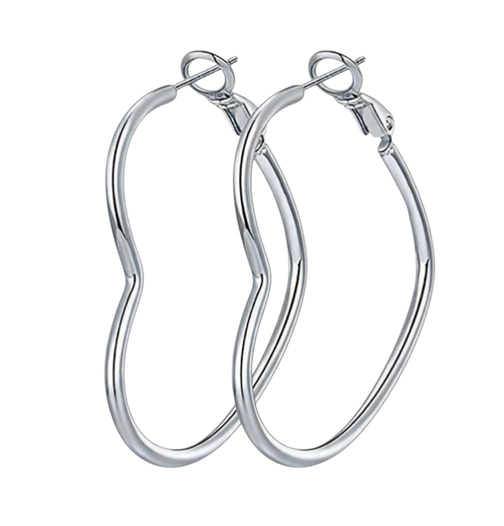 Aretes argollas lisas super fancy en corazón 45mm plateadas acero