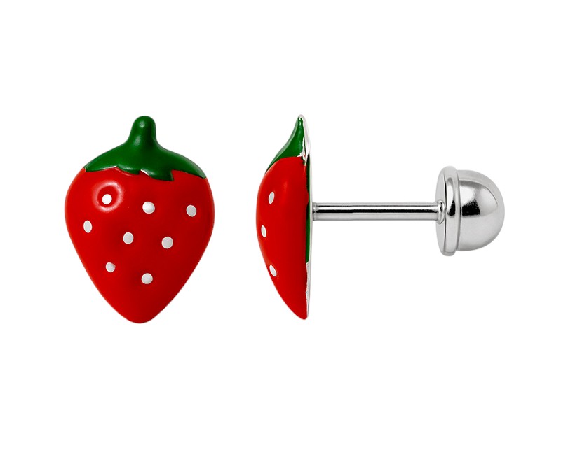 Aretes de figura de fresita con enamel alto 8mm plata 5