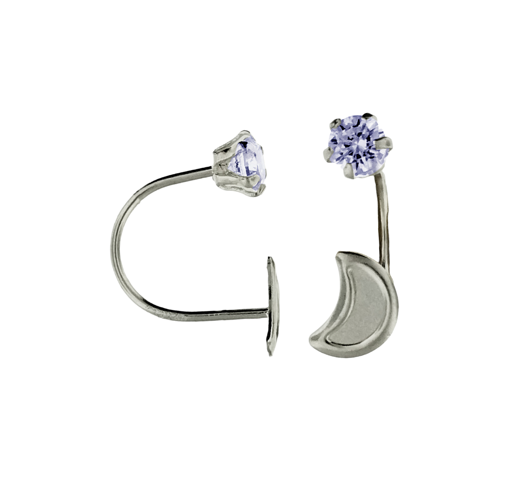 Aretes de telefono de luna y circonia plata