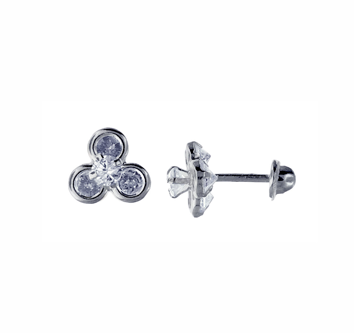 Aretes de trebol con 3 hojas C/Z en bisel y C/Z al centro plata 6