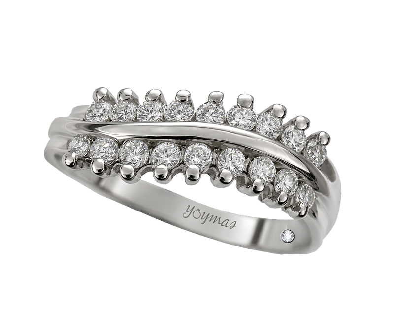Argolla casual en forma de onda con una linea lisa al centro con 9 circonias de 1.5mm arriba y abajo ancho 2.5mm con un Diamante de 1mm 0.5pts incrustado por la parte interna de anillo DIA-140