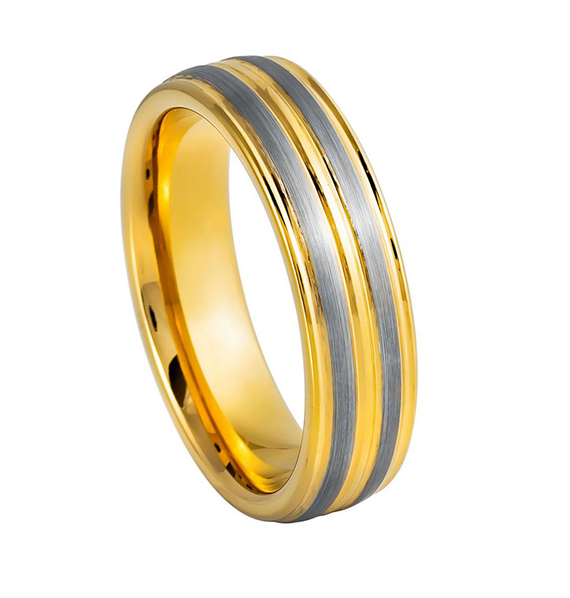 Argolla dorada con doble linea plateada Tungs. 6mm