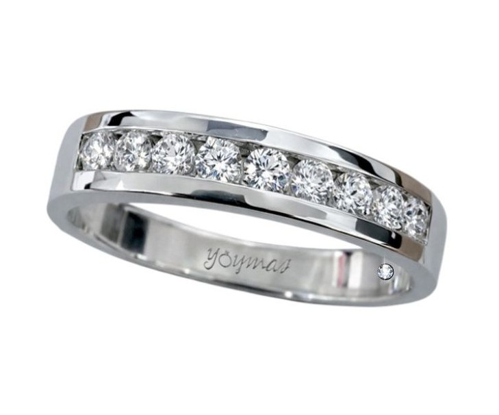 Argolla con 9 circonias de 2mm montadas en canal ancho 2.5mm con un Diamante de 1mm 0.5pts incrustado por la parte interna de anillo DIA-140