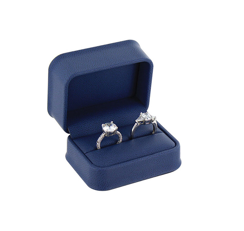 Caja empaque de cuero sintetico para 2 anillos color azul >5,000