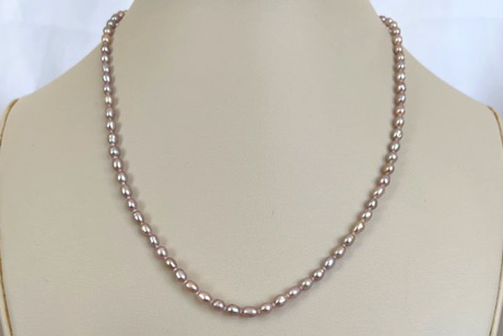 Collar de perlas de rio de arroz color rosado de 3.5 mm largo 18 pulgadas PNS152