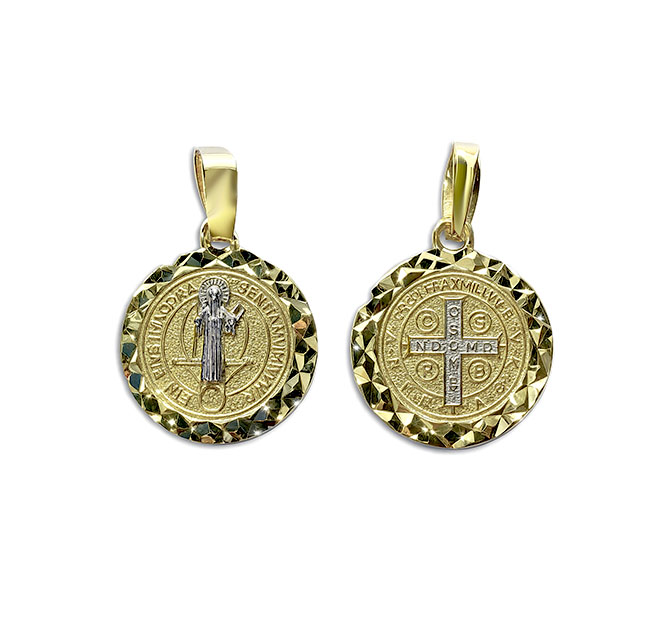 Medalla san Benito diamantado 2 Oros 10K