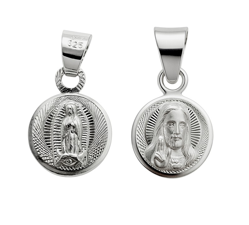 Medalla escapulario rostro de cristo y virgen de guadalupe diamantado 10.5mm plata 5-