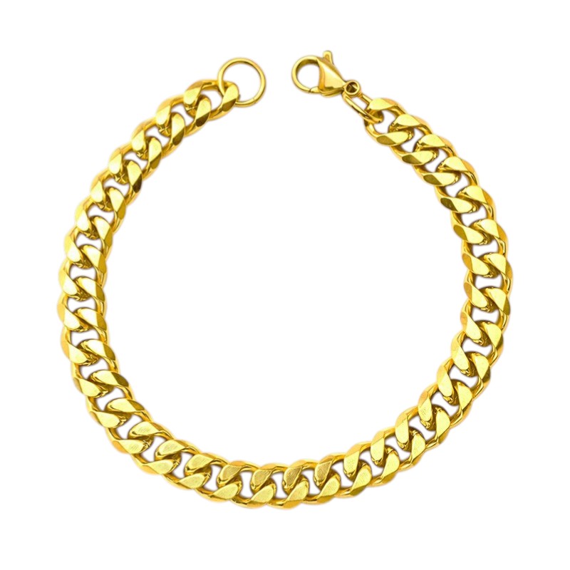 Pulsera cubana largo 8 pulgs ancho 5mm dorada acero