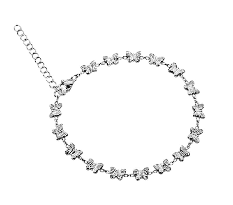 Tobillera con dijes de mariposas largo 9.40 pulgadas con 2.25 pulgadas de extención con trabador de cangrejo frances plateada